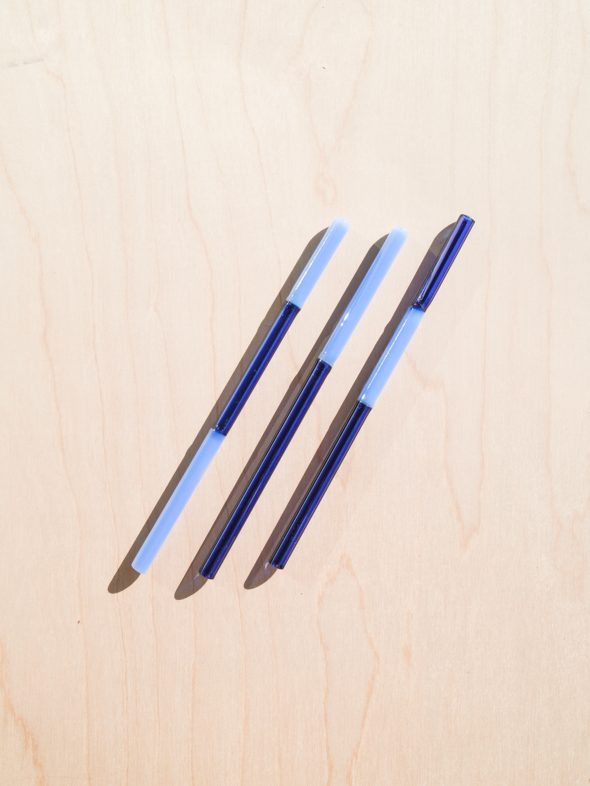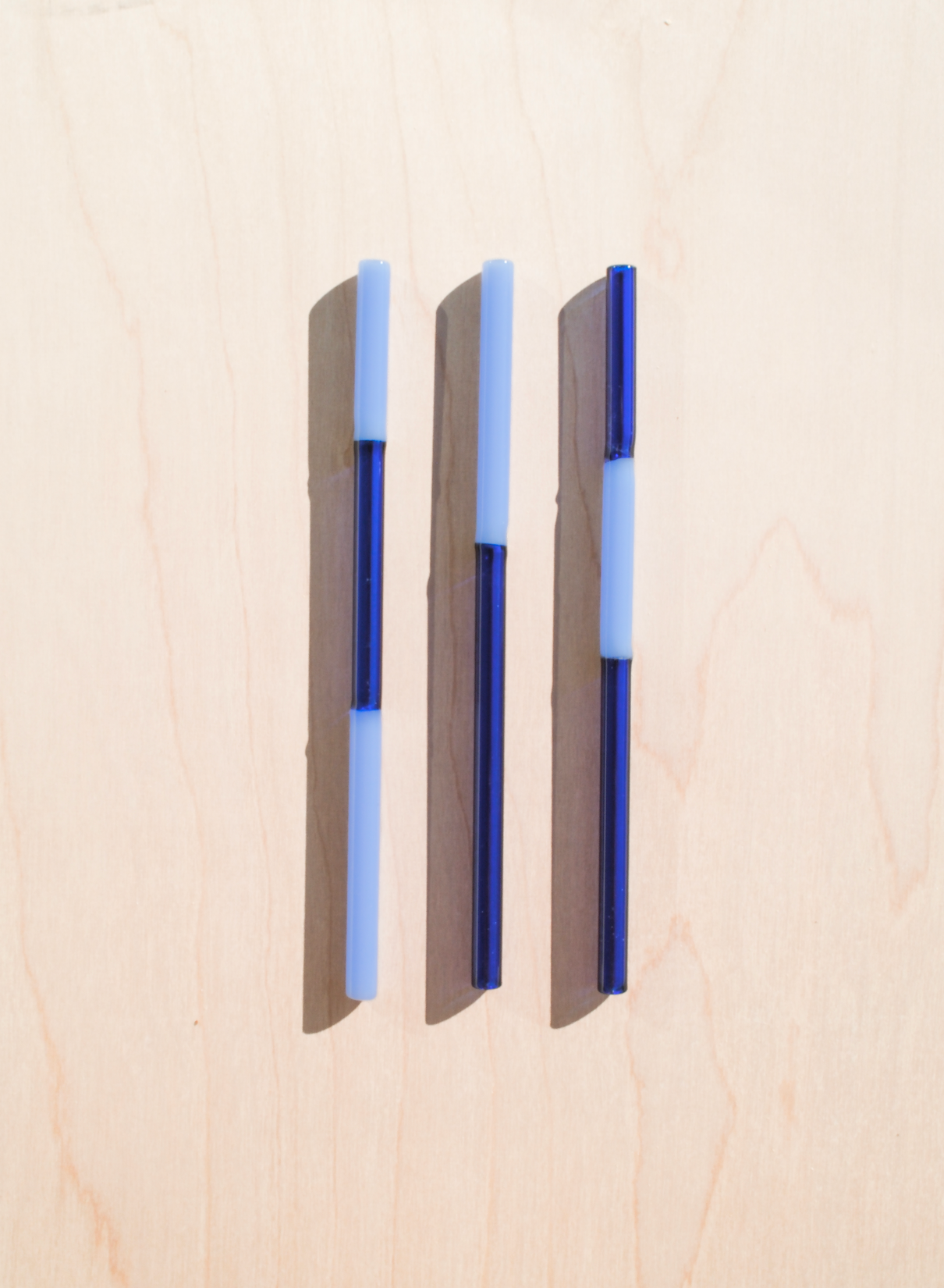 Set of three (3) Multicolor borosilicate glass straws. Hand made in Austin, Texas. Approximately 8". Dishwasher safe. Each Colorblock Straw is made of scrap glass from the other straw designs, making each straw unique and zero-waste!