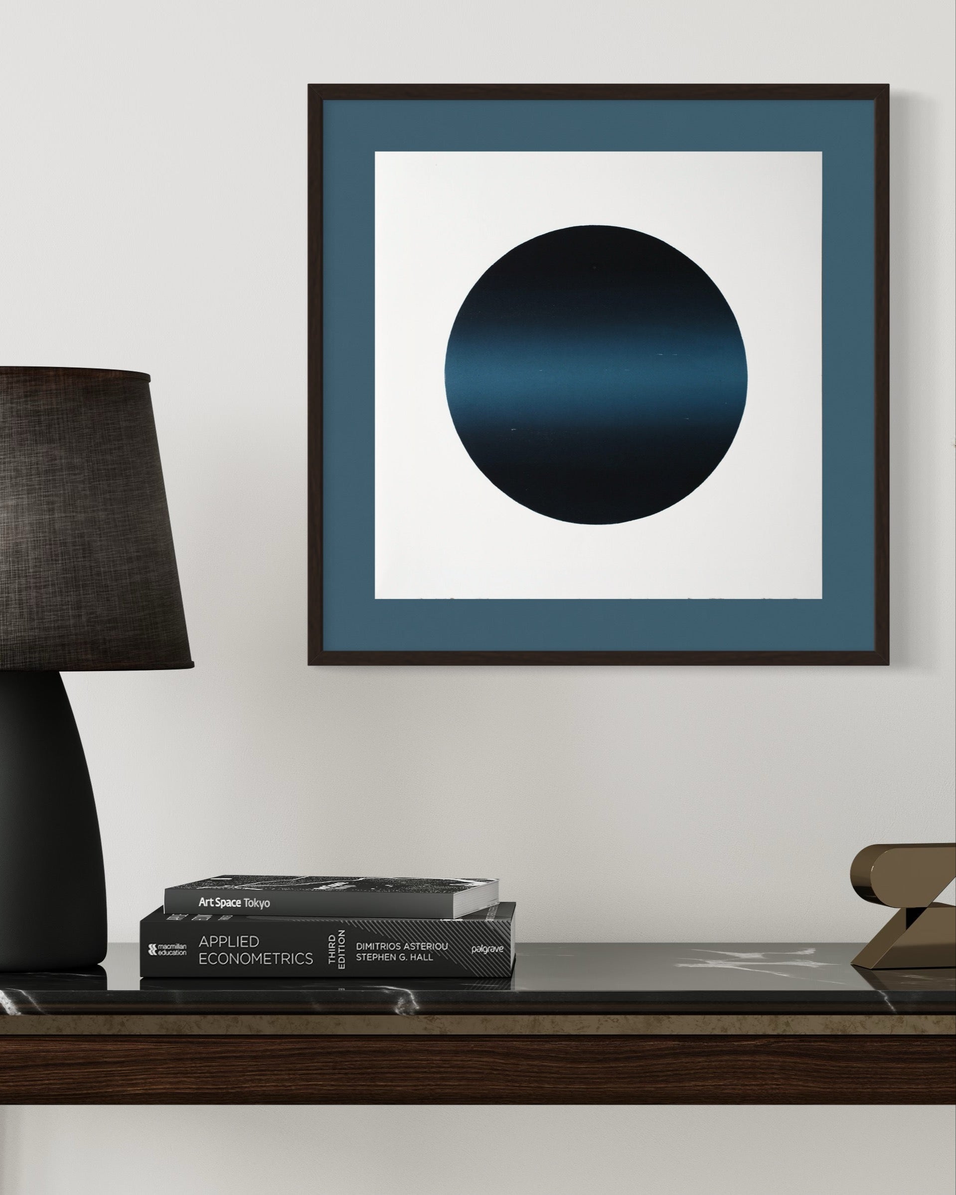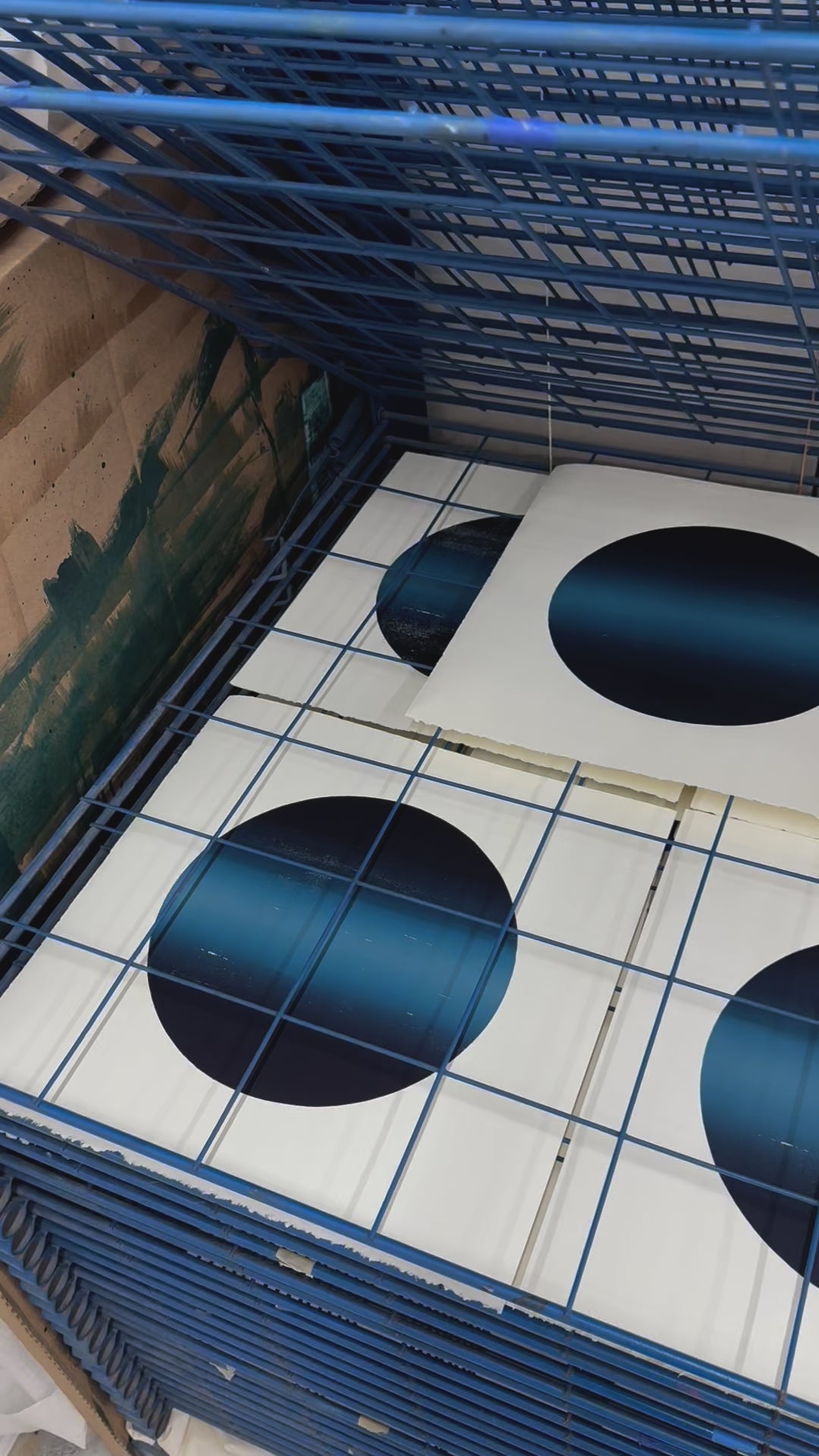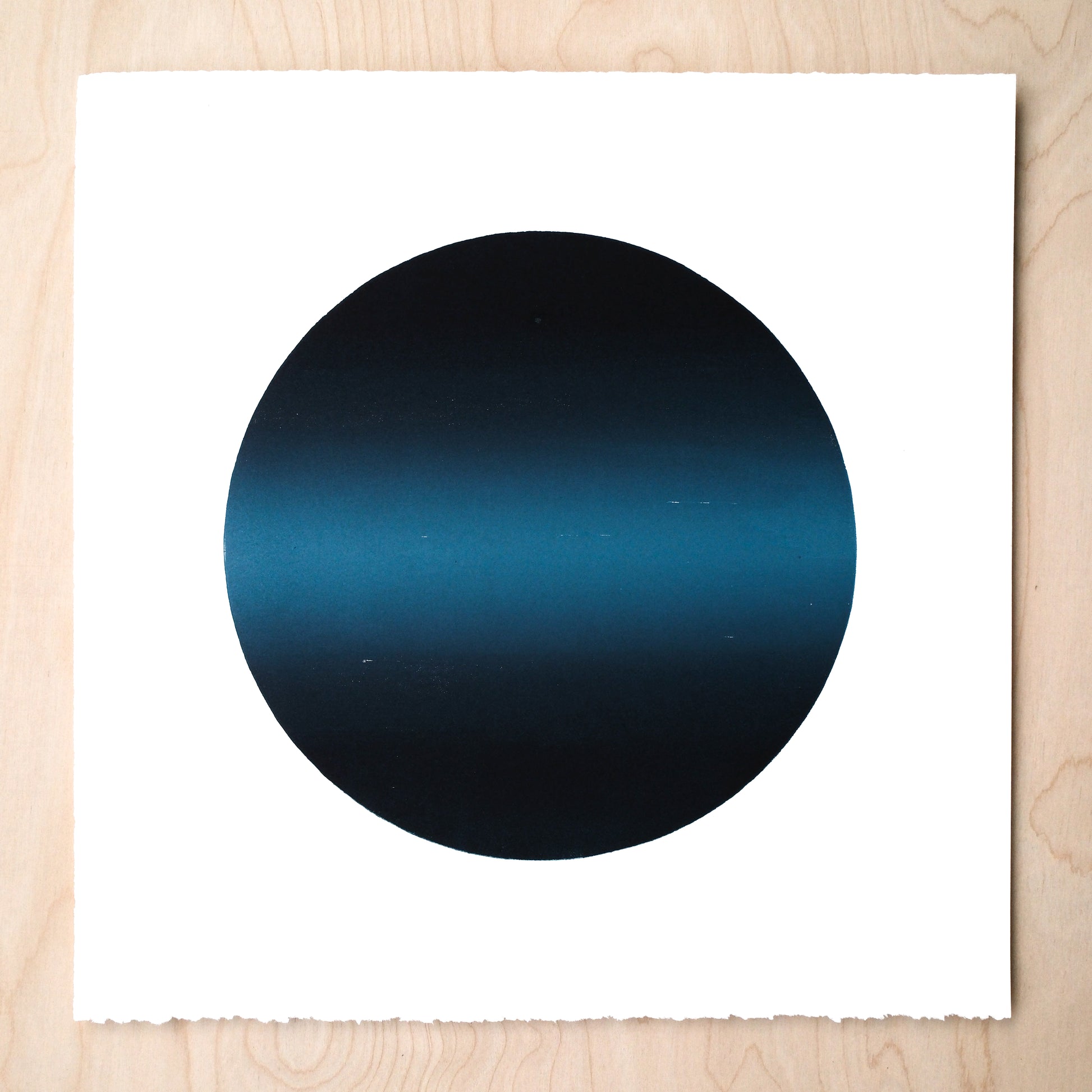 15 x 15 inch hand-printed gradient woodblock relief print. Orbital II is the second design in a series of seven prints. Orbital II has an edition of 8 prints. Prints are sold unframed.