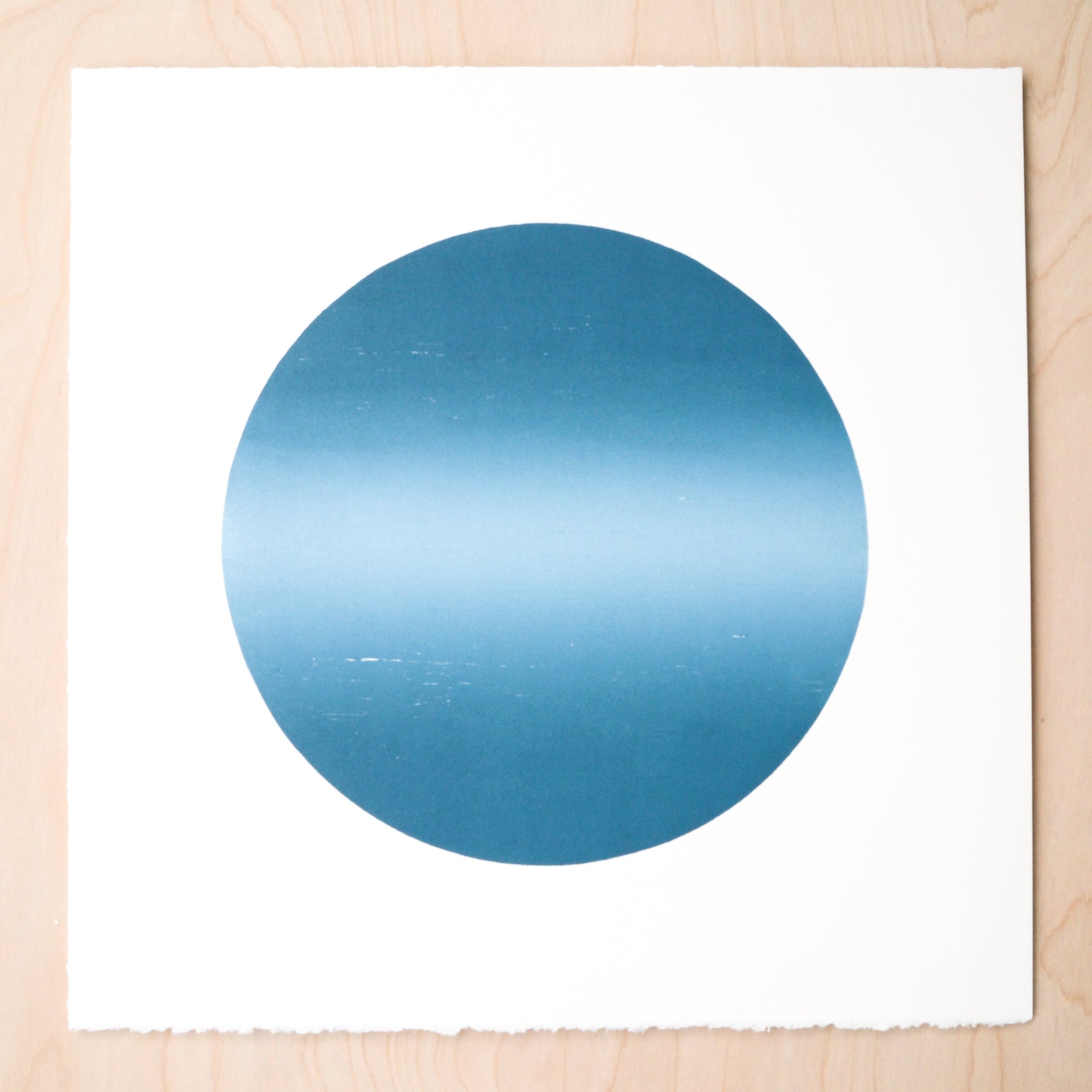 15 x 15 inch hand-printed gradient woodblock relief print. Orbital III is the second design in a series of seven prints. Orbital II has an edition of 8 prints. Prints are sold unframed.